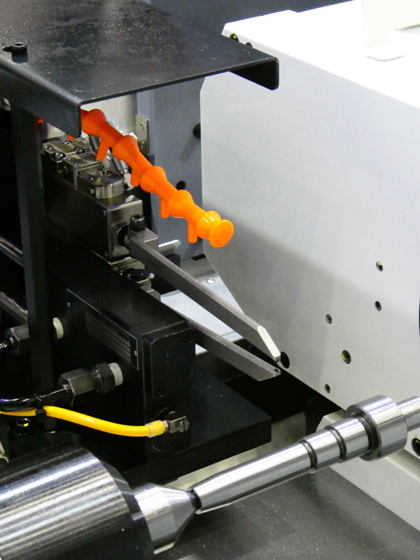 スクリューローター加工機「NSMシリーズ」と、非接触画像解析システム「e―na(イーナ)」を組み合わせ、スクリューローターはスクリュー式エアコンプレッサーに用いられ、加工時間短縮のため、素材にはあらかじめ指定した形状が作られた鋳鉄を用いることが多いが鋳鉄の場合、丸棒形状に比べてワークの位置決めに時間を要していました。