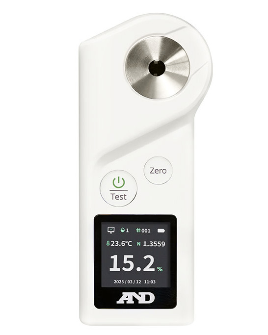 発売した「AD―4772」は、測定値(Brix%)と設定した換算係数から切削油濃度を自動で計算する。測定時間は約2秒。本体に最大100件の測定データを自動で保存できる。