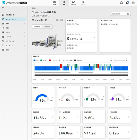 また、材料などの消費状況の確認も可能。稼働状況のほか、電力やガスの消費量の確認、リポート作成などもできる。